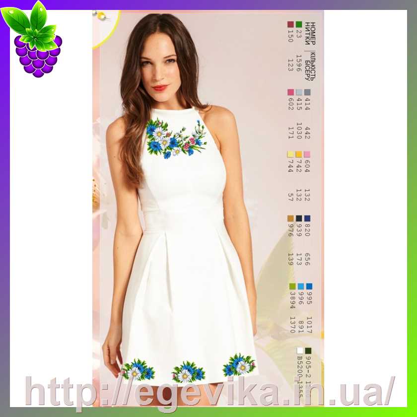 Заготовка плаття жіночого для вишивання бісером. Модель із круглою горловиною без рукавів.Тканина, схема: Габардин з нанесеним малюнком для вишивки бісеромКількість квітів: 16Техніка: Вишивка бісеромУ набір входить: два відрізки тканини з надрукованою схемою вишивки (перед і спинка), флизелин, перелік квітів і кількість бісеру.Розміри тканини: перед - 110х75 (70) см, спинка - 110х75 (70) смРекомендації: Перед вишиванням зони під вишивку потрібно проклеїти флизелином, що б тканина не розтягувалася під вагою бісеру. Після закінчення вишивання зайвий флизелин відривають по краю вишивки, що б він не виступав. Потім по бажаній вишивці розкроюють тканину й зшивають деталі.