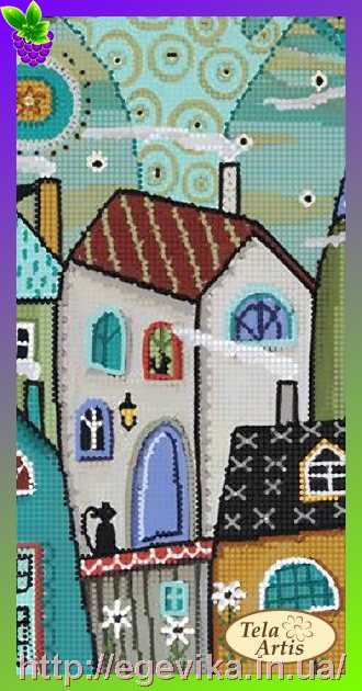 Фото Схема, частичная вышивка бисером, атлас, "Сказочный город - 2"