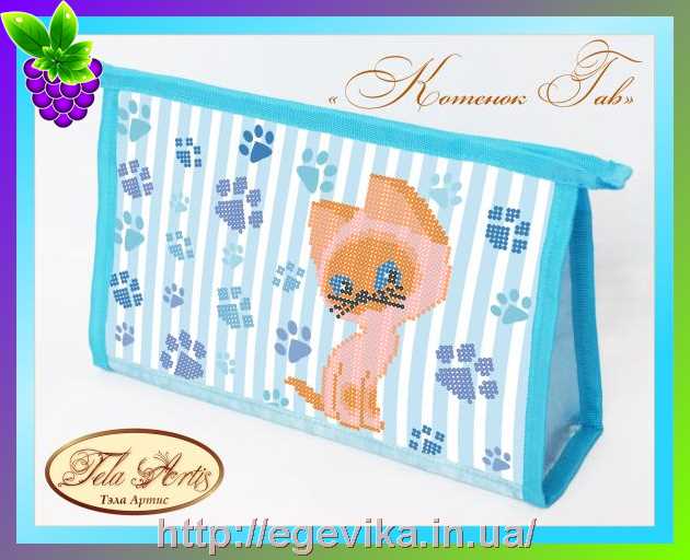 Фото Схема косметички, частичная вышивка бисером, атлас, "Котенок Гав"