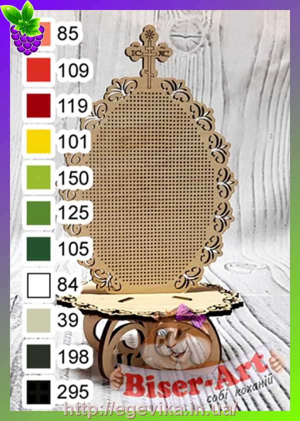 Размер: 7x8,5 смФормат: А7 (7.4 х 10.5 см)Количество цветов: 10Ткань: Фанера с нанесенным рисункомЗашивка: полная вышивка бисеромНаличие флизелина: нетуТехника вышивания, материалы: бисерВиды швов: монастырский шовВ комплект входит:- фанера с нанесенными отверстиями,- перечень номеров необходимого количества бисера Preciosa (Чехия),- инструкция по вышиванию.Бисер в комплект не входит.Вы можете заказать бисер у нас на сайте.Мы выполняем подбор бисера к схемам для вышивания.