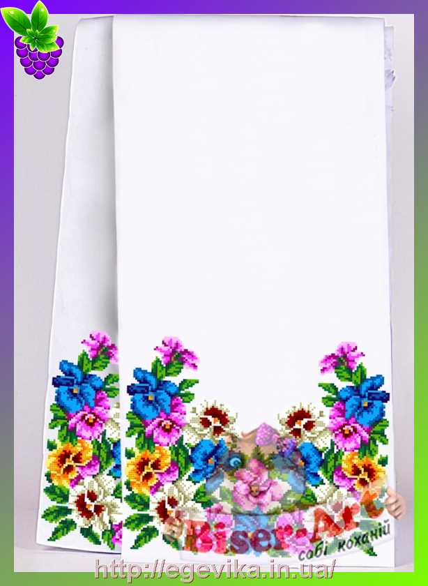Размер: 30x220 смФормат: Не определенКоличество цветов: 17Ткань: Габардин с нанесенным рисункомЗашивка: частичная вышивка бисеромНаличие флизелина: естьТехника вышивания, материалы: бисерВиды швов: монастырский шовВ комплект входит:- ткань с нанесенным рисунком,- перечень номеров необходимого количества бисера Preciosa (Чехия),- инструкция по вышиванию.Бисер в комплект не входит.Вы можете заказать бисер у нас на сайте.Мы выполняем подбор бисера к схемам для вышивания.