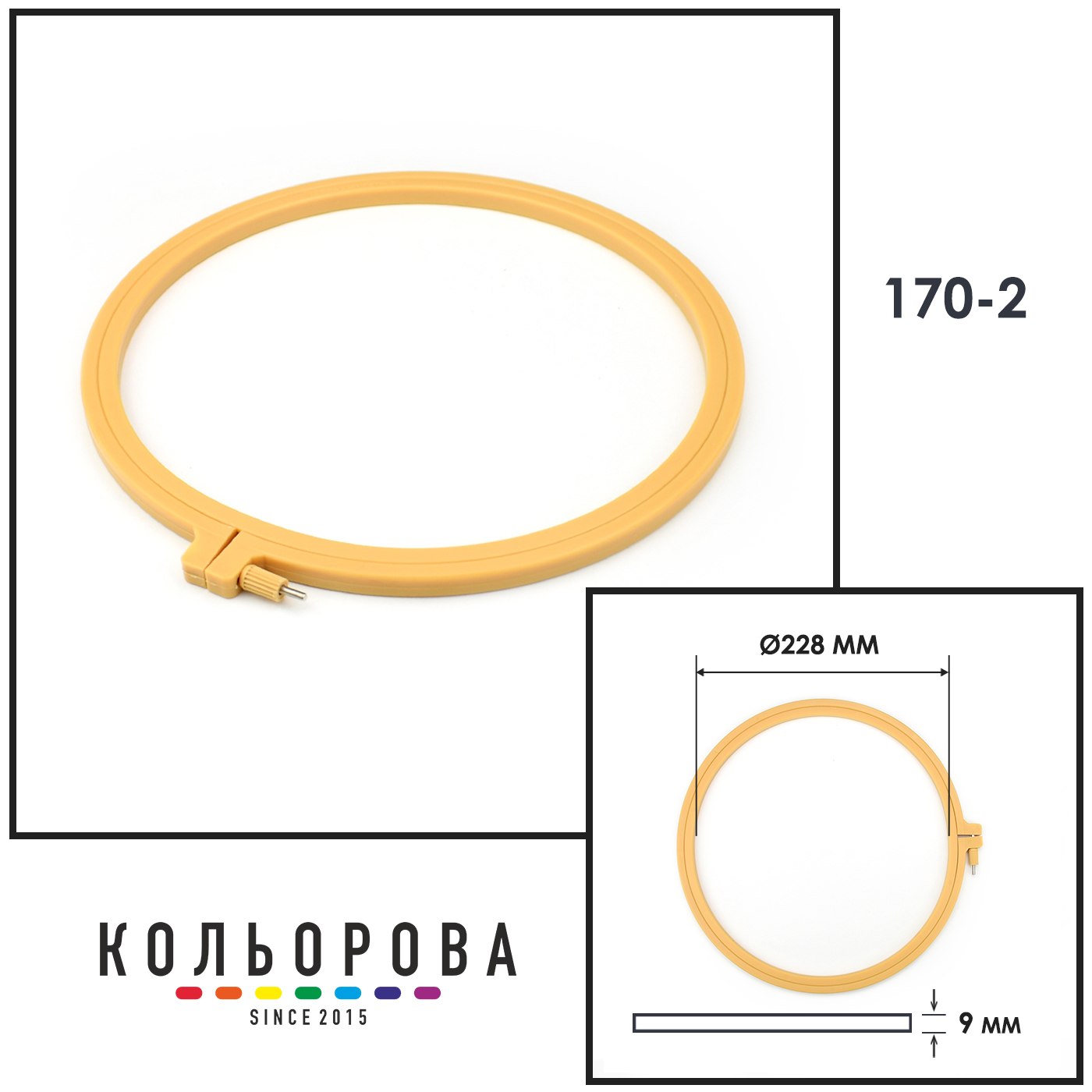 Пяльцы пластикові лаковані із гвинтомДіаметр: 22,8 смТовщина: 9 смКолір: бежевийМатеріал: пластик, металевий гвинт