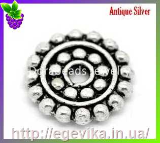 Гвоздики пины з наконечником квітка й куля, античне срібло, 50 х 0,7 мм, 2 шт