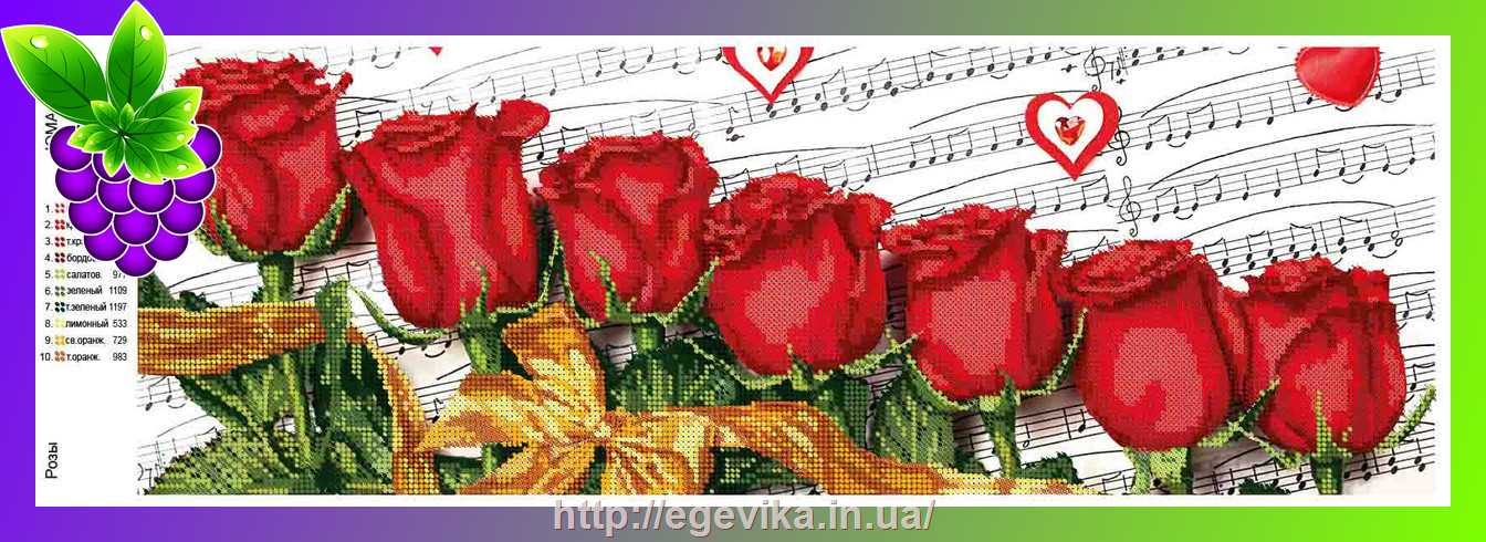Схема, частичная вышивка бисером, атлас, "Розы"
