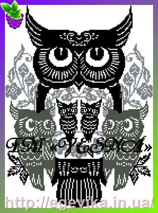 Схема, частичная вышивка бисером, габардин, "Сова с совятами"