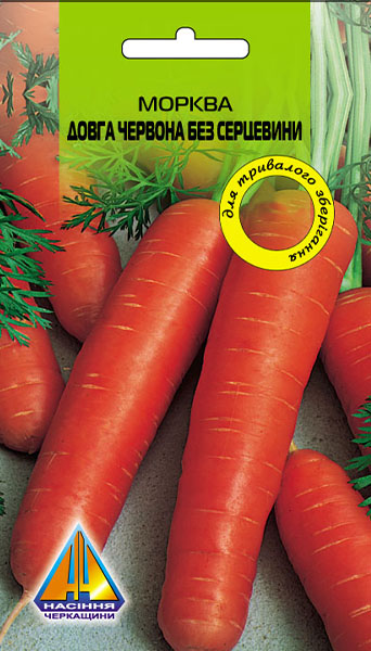 Морква Довга червона без серцевини (10г), пізньостигла, коренеплід до 25см, масою 180-220г