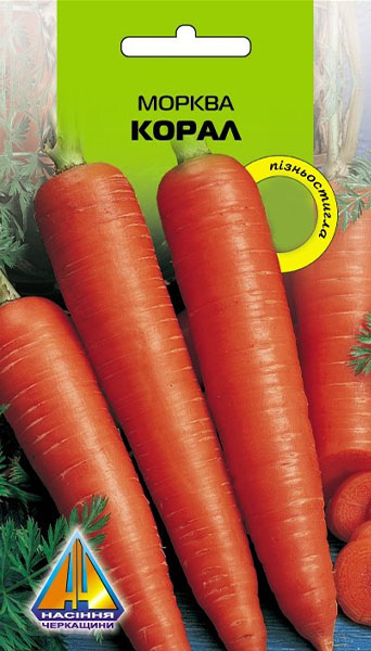 Морква Корал (10г), пізньостигла, коренеплід 18-22см, масою 230г