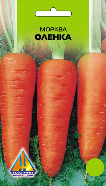 Морква Оленка (10г), ранньостигла, коренеплід 10-12см, діаметром 5-7см