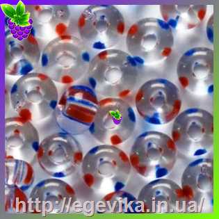 Бісер, №00930а, колір червоно-синя смуга, пакет 10 г, СОРТ 1
