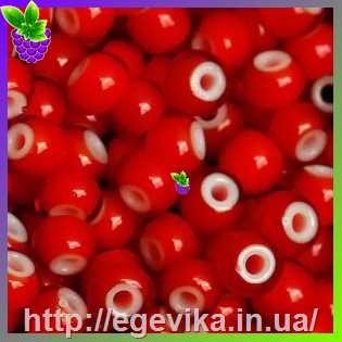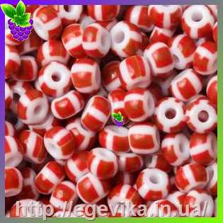 Бісер, №93730а, колір червоний з білим, пакет 10 г, СОРТ 1