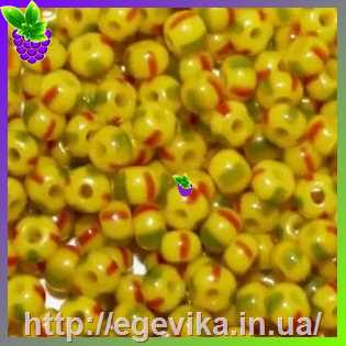 Бісер, №83150а, колір жовтий у червоно-зелену смугу, пакет 10 г, СОРТ 1