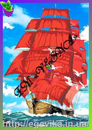 Схема, часткова вишивка бісером, габардин, "Червоні вітрила - вітрила любові"АРТИКУЛ: 46840