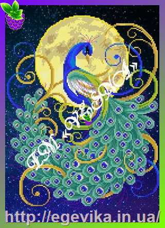 Схема, частичная вышивка бисером, габардин, Схема, частичная вышивка бисером, габардин, "Павлин в лунном свете"АРТИКУЛ: 46847