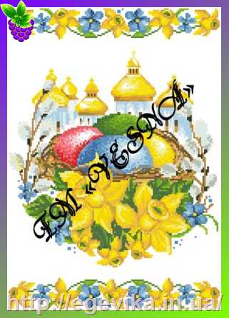 Пасхальный рушник, частичная вышивка бисером, атлас/габардин, "Пасхальные яичко в незабудках"