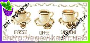 Схема, частичная вышивка бисером, габардин, "Кофе, капучино, эспрессо"