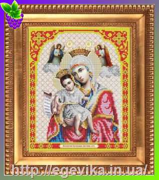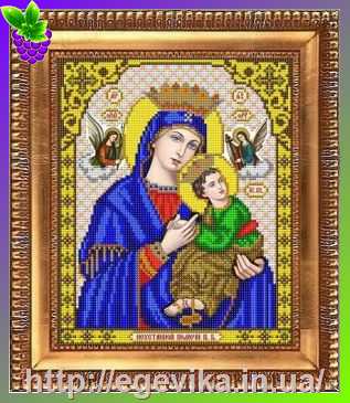 Схема, частичная вышивка бисером, габардин, икона "Пресвятая Богородица "Неустанной Помощи"