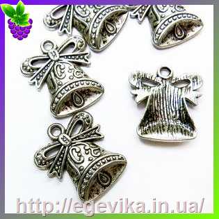 Кулон-Підвіска, дзвіночки, колір античне срібло, 16х14х4 мм