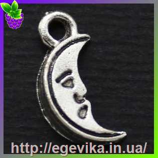 Кулон-Підвіска, півмісяць, колір античне срібло, 15х7х3 мм