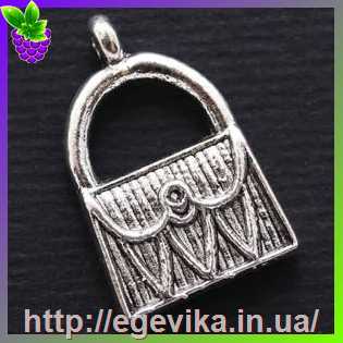 Кулон-Підвіска, сумочка, колір античне срібло, 16х12х3 мм