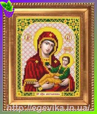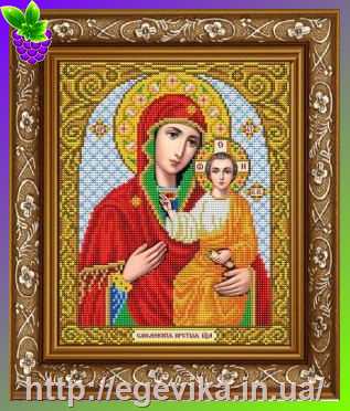 Схема, часткова вишивка бісером, габардин, ікона "Пресвята Богородиця "Трьох Радостей"