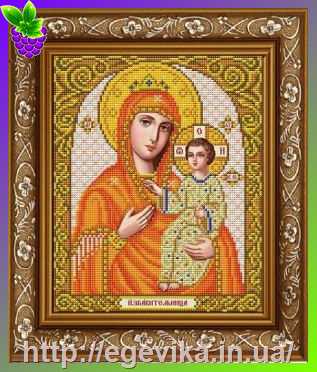 Схема, часткова вишивка бісером, габардин, ікона "Пресвята Богородиця "Заспокоювачка"