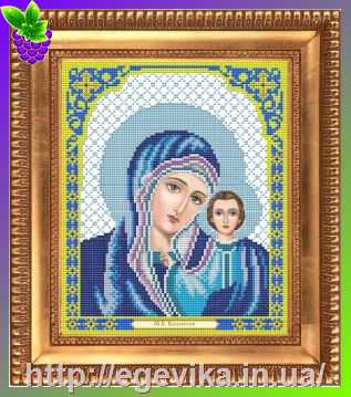Схема, часткова вишивка бісером, габардин, ікона "Божия Матерь "Казанська" у синьому"