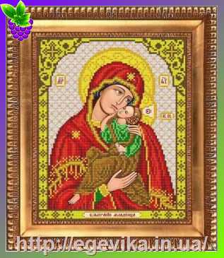 Схема, часткова вишивка бісером, габардин, ікона "Пресвята Богородиця "Взыграние дитину"