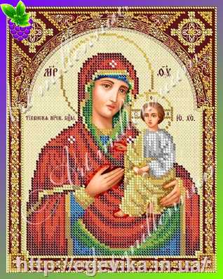 Схема, часткова вишивка бісером, габардин, ікона "Богородиця Тихвинская"