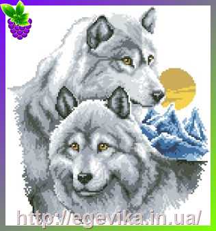 Схема, частичная вышивка бисером, атлас, "Волки"