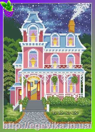 Схема, полная вышивка бисером, габардин, "Домик в викторианском стиле"