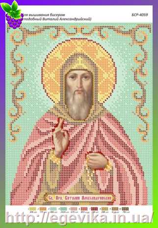 Схема, часткова вишивка бісером, габардин, ікона "Св. преп. Віталій Олександрійський"
