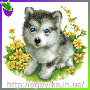 Схема, частичная вышивка бисером, атлас, "Собака породы хаски"