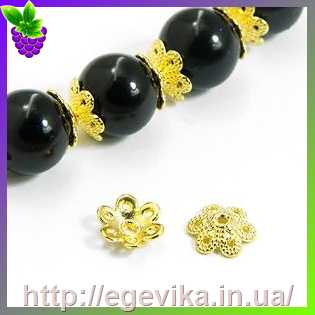 Обниматель, шапочка для бусин, колір золото, 7х7х2,5 мм
