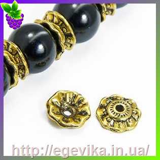 Обниматель, шапочка для бусин, колір античне золото, 10х3 мм