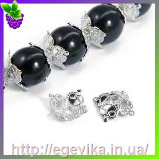 Обниматель, шапочка для бусин, колір срібло, 11х2,5 мм