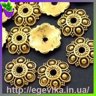 Обниматель, шапочка для бусин, колір античне золото, 12х3 мм