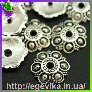 Обниматель, шапочка для бусин, колір античне срібло, 14х3 мм