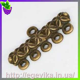 Коннектор, 6 отворів, колір античне золото, 25х12 мм