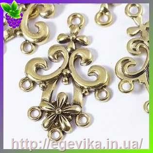 Коннектор, 6 отворів, колір античне золото, 16х13 мм
