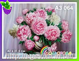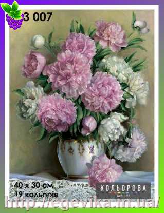 Схема, частичная вышивка бисером, габардин, "Пионы"