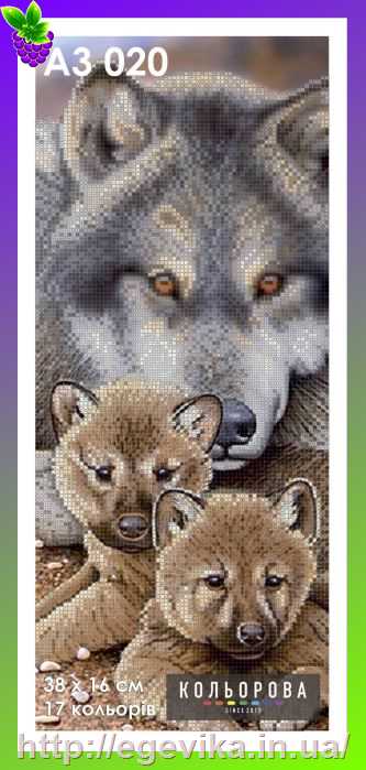 Схема, частичная вышивка бисером, габардин, "Волки"