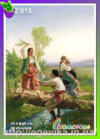 Схема, частичная вышивка бисером, габардин, "На мостике" ("На місточку")