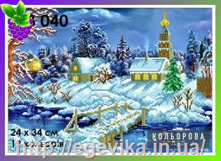 Схема, частичная вышивка бисером, габардин, "Зима"