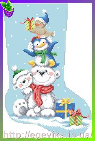 Заготовка новорічний чобіток для подарунків, вишивка бісером, габардин/атлас, "Друзі з подарунками"