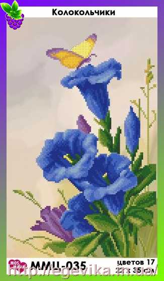 Схема, частичная вышивка бисером, габардин, "Колокольчики" ("Дзвіночки")